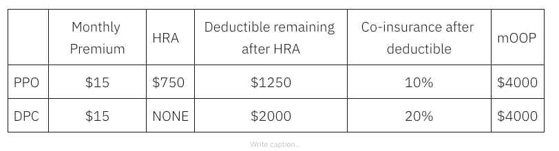 The plan above gives a patient “skin in the game” whenever she makes a decision about utilization.